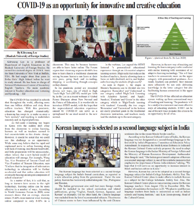 COVID-19 as an opportunity for innovative and creative education (Prof. Kilryoung Lee, Hankuk Univ. of Foreign Studies) Weekly Monday (English newspaper) 2020.09.05